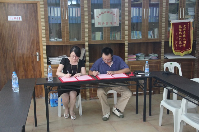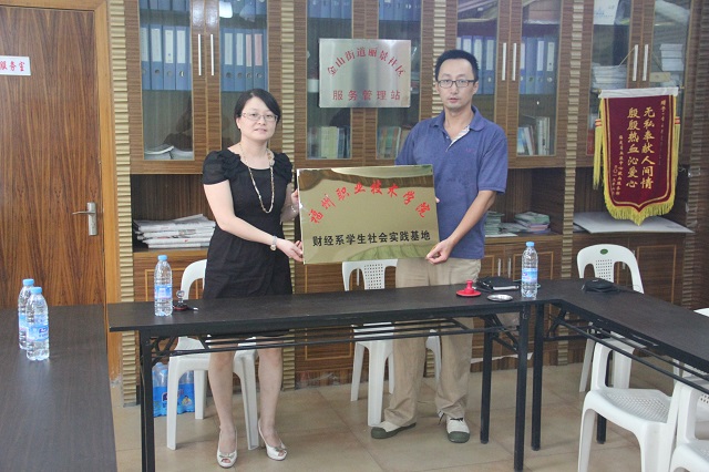 活動儀式上,財經(jīng)系黨總支郭麗霞書記首先介紹了學(xué)院社會實踐的基本情況以及各專業(yè)的特色。社區(qū)黨總支陳頌書記也對麗景社區(qū)的大致情況及學(xué)生社會實踐開展情況進(jìn)行了介紹。接著,雙方對“學(xué)生社會實踐基地”有關(guān)事項進(jìn)行進(jìn)一步的交流,以“服務(wù)社區(qū)”為目的、“社會實踐”為重點,通過長期“接力共建”,開展支教助學(xué)、文化下鄉(xiāng)、科技下鄉(xiāng)、教學(xué)實習(xí)等社會實踐活動。最后,雙方簽署了“學(xué)生社會實踐基地”的協(xié)議,并在社區(qū)掛上“福州職業(yè)技術(shù)學(xué)院財經(jīng)系學(xué)生社會實踐基地”牌。