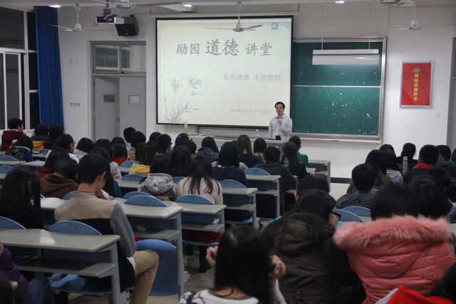 為了進一步加強大學生素質道德教育,倡導學生發(fā)揚中國民族傳統(tǒng)美德,2013年10月9日,經濟系在2號樓309多媒體教室開展勵園道德講堂活動。講堂邀請了電大與繼教中心副主任、市委講師團成員、福州市社區(qū)大學吳發(fā)水副教授主講,經濟系預備黨員、入黨積極分子參加了此次講堂。