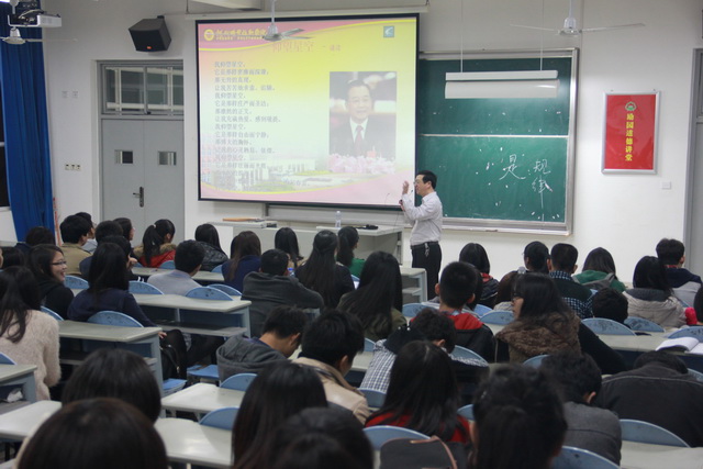 本次勵園道德講堂以“黨員道德 先鋒楷?!睘橹黝}。在道德講堂上,大家首先共同唱響了《學習雷鋒好榜樣》這首膾炙人口的歌曲,一起朗誦了道德經——仰望星空的內容。接著,吳老師著重向同學們講解了作為一個黨員應具有大公無私、勇于奉獻、實事求是等共產黨員精神。其次,通過學習張思德、李大釗、夏明翰等模范人物,讓同學們清楚一個優(yōu)秀的黨員應具備什么樣的精神。“英雄走了,但精神還在”,榜樣的力量是無窮的,時代的前進需要積極向上的道德風尚來引領,社會的發(fā)展需要道德楷模的力量來推動。偉人的事跡激勵著大學生努力進取,為社會奉獻出一份力量。通過學生代表交流內心感悟,更是讓在場的全體同學深刻地認識到黨員精神的偉大。最后吳老師在講堂結束前送給了同學們“茍利國家生死以,豈因禍福避趨之”等富含哲理的名言與大家共勉。
