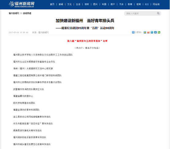 五四青年節(jié)來(lái)臨之際,我院文化創(chuàng)意學(xué)院(原人文系)特教生手工工作坊創(chuàng)業(yè)團(tuán)隊(duì)榮獲團(tuán)市委“福州青年五四獎(jiǎng)?wù)录w”榮譽(yù)稱號(hào)。