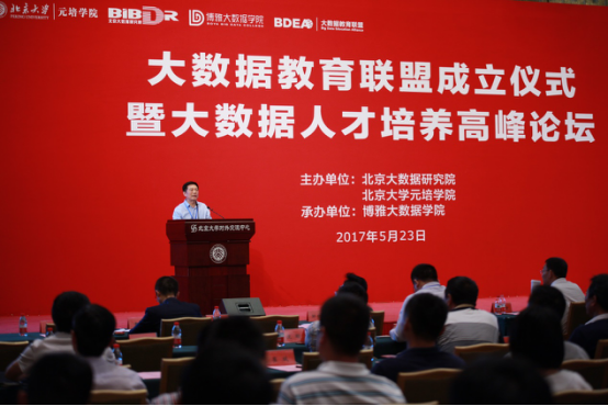 為了進(jìn)一步貫徹落實(shí)國家大數(shù)據(jù)戰(zhàn)略,促進(jìn)大數(shù)據(jù)產(chǎn)業(yè)的穩(wěn)步發(fā)展,北京大數(shù)據(jù)研究院與北京大學(xué)元培學(xué)院發(fā)起并聯(lián)合國內(nèi)眾多高等院校、科研機(jī)構(gòu)和企事業(yè)單位共同組建“大數(shù)據(jù)教育聯(lián)盟”。我校抓住大數(shù)據(jù)產(chǎn)業(yè)發(fā)展的有利時(shí)機(jī),成立了全國首家阿里巴巴大數(shù)據(jù)學(xué)院,并應(yīng)邀加入“大數(shù)據(jù)教育聯(lián)盟”。應(yīng)北京大數(shù)據(jù)研究院的邀請(qǐng),李秋斌校長于2017年5月23日前往北京大學(xué)參加“大數(shù)據(jù)教育聯(lián)盟成立儀式暨大數(shù)據(jù)人才培養(yǎng)高峰論壇”。