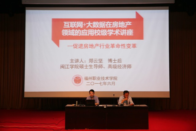 為了向全校師生展示大數(shù)據(jù)技術(shù)應(yīng)用的廣泛性、科學(xué)性及其帶來的可見效益,學(xué)校特邀請閩江學(xué)院碩士研究生導(dǎo)師、高級經(jīng)濟師、福建省軟件行業(yè)協(xié)會副會長鄭云堅博士于2017年6月21日下午在500人禮堂,為全校教師及阿里巴巴大數(shù)據(jù)學(xué)院部分學(xué)生開辦“互聯(lián)網(wǎng)+”大數(shù)據(jù)在房地產(chǎn)領(lǐng)域應(yīng)用講座,講座由產(chǎn)學(xué)研實訓(xùn)中心胡昱主任主持。
