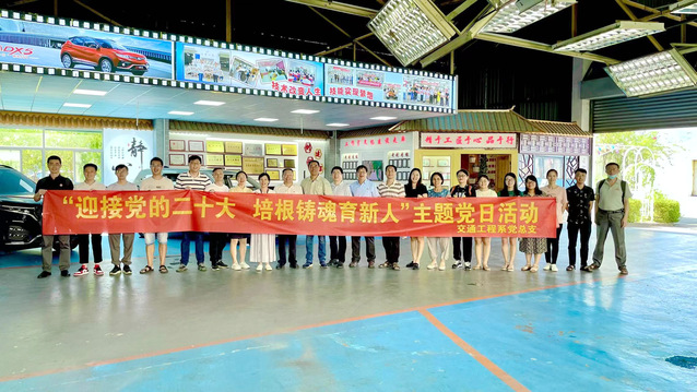 9月15日,交通工程系黨總支、人事處發(fā)規(guī)處黨支部、組織部宣傳統(tǒng)戰(zhàn)部工會(huì)黨支部聯(lián)合開(kāi)展“迎接黨的二十大 培根鑄魂育新人”主題黨日活動(dòng),組織黨員教師到福建東南(汽車(chē))有限公司開(kāi)展觀摩學(xué)習(xí),進(jìn)一步推動(dòng)深學(xué)、思悟、篤行,激發(fā)黨員教師干事創(chuàng)業(yè)熱情,以實(shí)際行動(dòng)迎接黨的二十大勝利召開(kāi)。