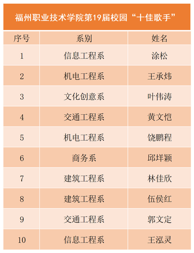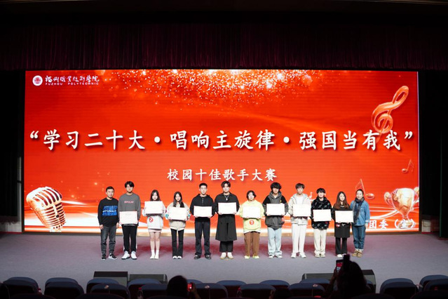 12月8日晚,以“學(xué)習(xí)二十大 唱響主旋律 強(qiáng)國當(dāng)有我”為主題的福州職業(yè)技術(shù)學(xué)院第19屆校園“十佳歌手”大賽決賽在禮堂順利舉辦,經(jīng)過各系初賽選拔,共有14名優(yōu)秀選手站上決賽舞臺。
