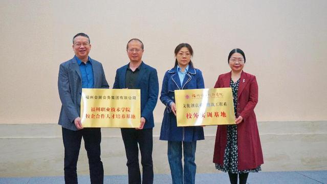劉春蘭、伍廣星共同為“校外實訓(xùn)基地”與“校企合作人才培養(yǎng)基地”授牌。我校文化創(chuàng)意系主任林東、福州會展會務(wù)集團總經(jīng)理鄭廷偉分別代表雙方簽署協(xié)議。