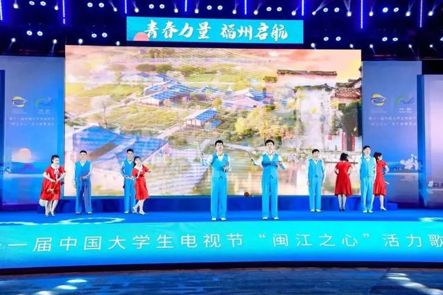 3月25日晚,由中國文學(xué)藝術(shù)界聯(lián)合會、中國電視藝術(shù)家協(xié)會、中國傳媒大學(xué)共同主辦,福州市人民政府等承辦的“青春力量·福州啟航”——第十一屆中國大學(xué)生電視節(jié)“閩江之心”活力歌舞演出隆重舉行,福州職業(yè)技術(shù)學(xué)院呈現(xiàn)曲藝聯(lián)唱《福連福州福多多》在現(xiàn)場掀起高潮。