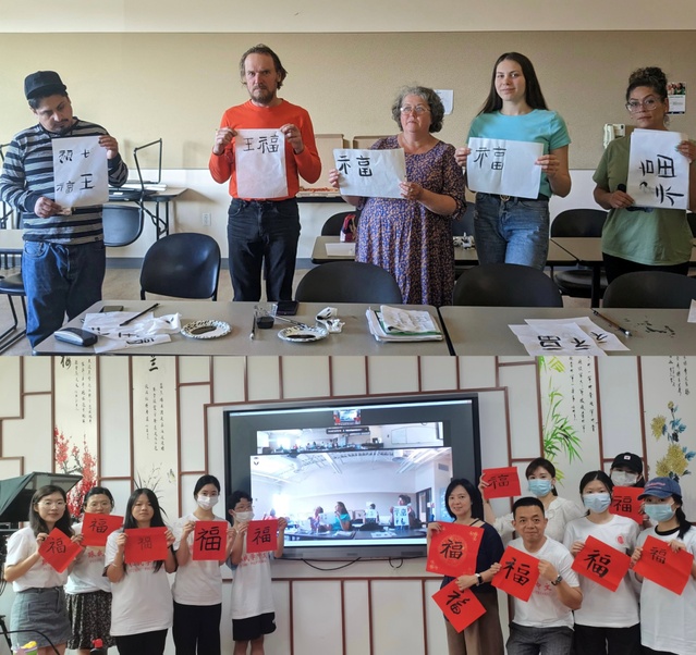 我校與美國貝茨技術(shù)學(xué)院是姊妹校,兩校簽署交流合作備忘錄,長期保持友好溝通和文化交流。為了響應(yīng)習(xí)近平總書記于2022年1月31日復(fù)信美國華盛頓州塔科馬市市長伍達(dá)德斯、斯特拉孔市市長穆里提到的“推動各國人民一起向未來”的美好愿景,近日,兩校師生通過云端開展了中國毛筆書寫沉浸式體驗活動,收到很好反響。