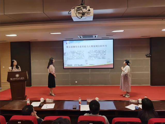 本屆輔導(dǎo)員素質(zhì)能力大賽分為賽前素質(zhì)能力提升培訓(xùn)、初賽和決賽三個(gè)環(huán)節(jié)。賽前,學(xué)工部門(mén)積極謀劃輔導(dǎo)員隊(duì)伍素質(zhì)能力提升行動(dòng),通過(guò)開(kāi)設(shè)年輕輔導(dǎo)員業(yè)務(wù)知識(shí)專(zhuān)題網(wǎng)絡(luò)課程,組織各系輔導(dǎo)員分批赴省內(nèi)外優(yōu)秀高校學(xué)習(xí)調(diào)研,邀請(qǐng)全國(guó)輔導(dǎo)員年度人物獲得者開(kāi)展專(zhuān)題講座,遴選輔導(dǎo)員骨干參加省級(jí)輔導(dǎo)員培訓(xùn)班等形式,組織各類(lèi)培訓(xùn)、學(xué)習(xí)13場(chǎng),參加輔導(dǎo)員350余人次。在初賽環(huán)節(jié),共有41名輔導(dǎo)員參加基礎(chǔ)知識(shí)測(cè)試和案例探討,考察選手的理論素養(yǎng)、業(yè)務(wù)知識(shí),以及綜合運(yùn)用理論分析問(wèn)題、研判問(wèn)題、解決問(wèn)題的能力,最終9名選手晉級(jí)決賽。決賽環(huán)節(jié)為談心談話,主要考察輔導(dǎo)員對(duì)學(xué)生特征、學(xué)生成長(zhǎng)成才規(guī)律的了解把握程度,以及對(duì)學(xué)生的教育引導(dǎo)能力、解決理論困惑和實(shí)際問(wèn)題的能力等。