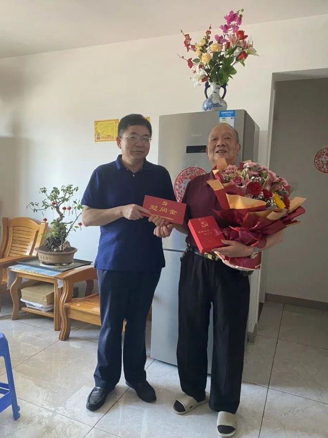 為慶祝中國(guó)共產(chǎn)黨成立102周年,在“七一”前夕,學(xué)校黨委書(shū)記林子波走訪慰問(wèn)退休老黨員陳增華老師,并為其送上“光榮在黨50年”紀(jì)念章。組織部、人事處負(fù)責(zé)同志參加慰問(wèn)。