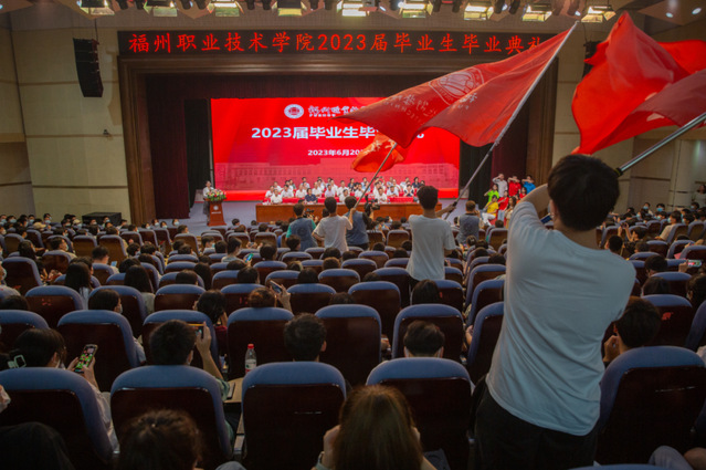 典禮開(kāi)始前,校歌《夢(mèng)起勵(lì)園》、合唱《侯官是我家》和《不說(shuō)再見(jiàn)》《鳳凰花開(kāi)的路口》,一首首熟悉的旋律響徹禮堂,《我們這十年——砥礪奮進(jìn)中的福州職業(yè)技術(shù)學(xué)院》和專門準(zhǔn)備的專題片《我的勵(lì)園記憶——獻(xiàn)給2023屆畢業(yè)生》,一個(gè)個(gè)精彩的鏡頭閃爍禮堂,贏得現(xiàn)場(chǎng)師生陣陣掌聲與歡呼。