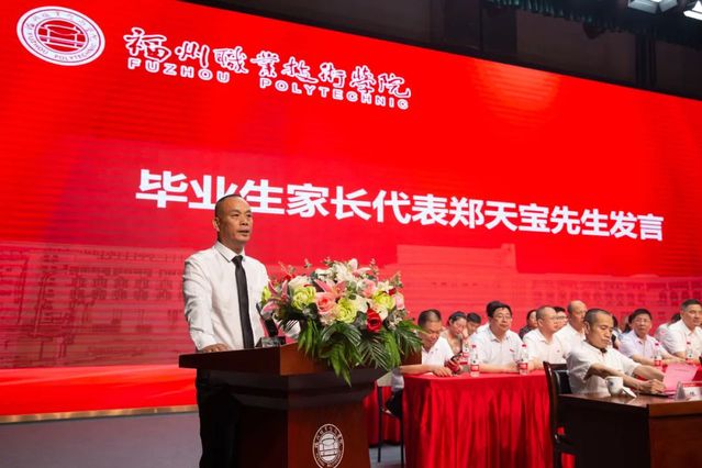 畢業(yè)生家長(zhǎng)鄭天寶代表2023屆畢業(yè)生家長(zhǎng),對(duì)學(xué)校的精心培養(yǎng)表示誠(chéng)摯感謝,寄語(yǔ)畢業(yè)生要不斷追求卓越,不負(fù)祖國(guó)、不負(fù)韶華、不負(fù)青春,為家庭增光,為學(xué)校添彩。