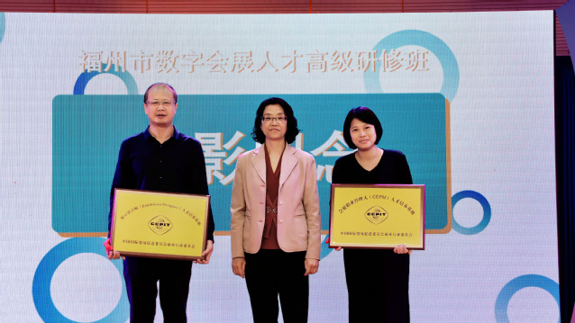 此次培訓(xùn)受到中國國際貿(mào)易促進委員會商業(yè)行業(yè)委員會認可支持,并向福州職業(yè)技術(shù)學(xué)院、福州市會展行業(yè)協(xié)會授予會展職業(yè)經(jīng)理人、展示設(shè)計師等證書人才培養(yǎng)基地牌匾。