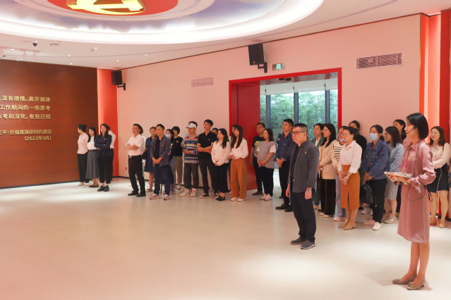 11月8日,文化創(chuàng)意系黨總支組織師生黨員參觀學(xué)習(xí)中共福建省委黨校習(xí)近平新時(shí)代中國特色社會(huì)主義思想主題教室,開展主題教育現(xiàn)場(chǎng)教學(xué),接受黨性教育,感悟思想偉力,凝聚奮進(jìn)力量。