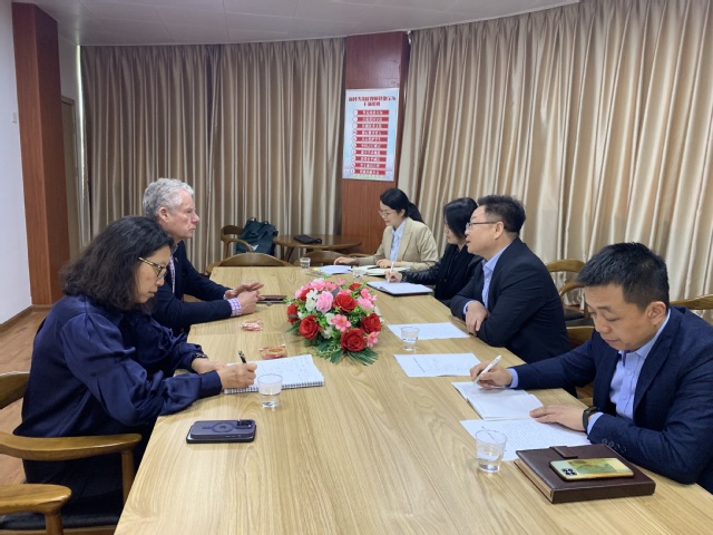 陳念東代表學(xué)校對(duì)托尼·奧·布萊恩(Tony O’Brien)一行來訪表示歡迎,介紹了我校基本概況及國際交流合作情況。他指出,我校高度重視國際交流合作,兩校在前期引進(jìn)資源和學(xué)生“云游學(xué)”合作的基礎(chǔ)上可以深入探索“2+1”“3+1+2”等中外合作新模式,拓展合作專業(yè)及合作領(lǐng)域,共同推動(dòng)兩校國際化發(fā)展。張?zhí)m英就推動(dòng)師生互訪、教師學(xué)歷提升等方面的合作做了交流。