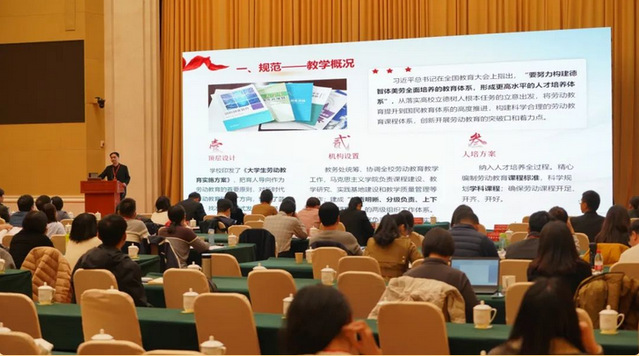 首屆高校勞動教育示范案例征集展播活動由中國高等教育學會勞動教育專業(yè)委員會、新華網(wǎng)、中國教育電視臺和高等教育出版社聯(lián)合舉辦,入選展播優(yōu)秀案例將由新華網(wǎng)和中國教育電視臺面向全國進行集中展播。12月9日,展播活動交流會暨第二屆高校勞動教育課程教學研討會在河北省石家莊召開,200多位來自全國各地的專家學者及教育教學工作者匯聚一堂,總結(jié)交流了勞動教育的特色做法及實踐經(jīng)驗。我校馬克思主義學院副院長舒良榮受邀作為高職院校唯一代表,在大會上做了《勞動融合育人的探索與實踐》主題發(fā)言,獲得與會同仁一致肯定和好評。
