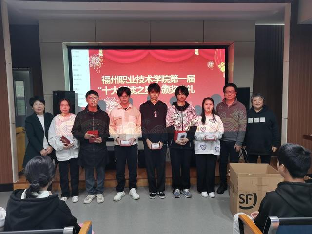 “閱讀打卡21天挑戰(zhàn)賽”挑戰(zhàn)成功且在活動期間積分排名在前50名的同學積極參與閱讀之星評選活動,經(jīng)現(xiàn)場展示、評委打分后,評選出祝文杰、林宇飛等10位同學為福州職業(yè)技術(shù)學院第一屆“十大閱讀之星”。評選結(jié)束后,依次為獲得“十大閱讀之星”和“閱讀打卡21天挑戰(zhàn)賽”積分前50名的學生頒發(fā)了榮譽證書和紀念品。