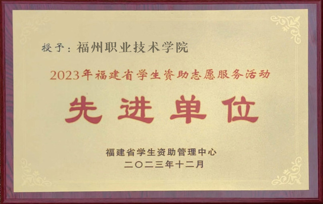 學(xué)校榮獲2023年度福建省學(xué)生資助志愿服務(wù)活動先進單位。校學(xué)生資助管理中心朱荔老師獲2023年度福建省學(xué)生資助志愿者先進工作者、福建省學(xué)生資助宣傳工作“先進個人”榮譽稱號。