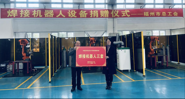 1月10日,福州市總工會向?qū)W校捐贈3套焊接機(jī)器人設(shè)備,價(jià)值64.89萬元,捐贈儀式在福建省特種設(shè)備檢驗(yàn)研究院連江實(shí)訓(xùn)基地舉行。我校副校長張?zhí)m英,福州市總工會黨組成員、四級調(diào)研員陶海華,市總工會勞動和經(jīng)技工作部及學(xué)校黨政辦公室、機(jī)電工程系相關(guān)同志等參加活動。