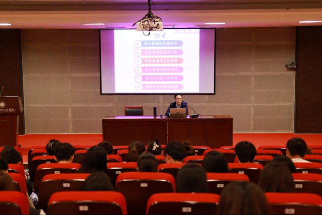 肖勇杰老師從職業(yè)教育的內(nèi)涵特征、發(fā)展歷史、大好形勢(shì)和教育模式等方面入手,勉勵(lì)同學(xué)們?cè)诼殬I(yè)教育形勢(shì)大好的背景下,注重綜合職業(yè)能力的培養(yǎng),積極提升自身的專業(yè)能力、方法能力和社會(huì)能力,在職業(yè)教育的廣闊舞臺(tái)上成就出彩人生。