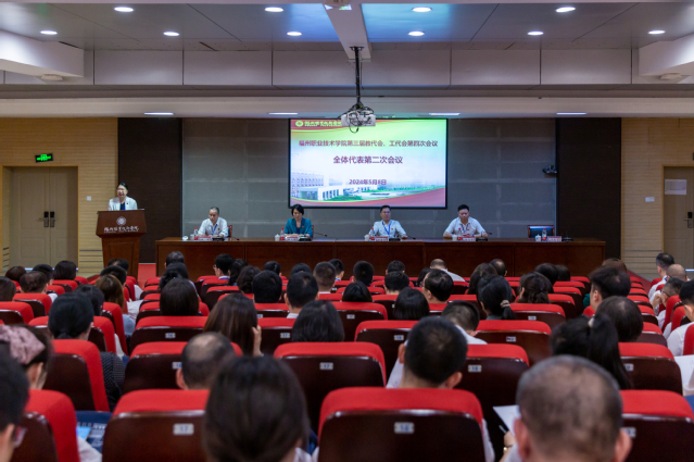 5月8日,福州職業(yè)技術(shù)學(xué)院第三屆教職工代表大會、工會會員代表大會第四次會議在學(xué)術(shù)報(bào)告廳召開,全體校領(lǐng)導(dǎo)出席會議,正式代表、列席代表200余人參加會議。校黨委書記王建生講話,黨委副書記、校長陳念東作學(xué)校工作報(bào)告,黨委委員、副校長劉春蘭主持會議。