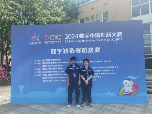近日,2024數(shù)字中國(guó)創(chuàng)新大賽·數(shù)字智造賽道決賽在福州落幕,我校機(jī)電工程學(xué)院2022級(jí)智能控制技術(shù)專業(yè)學(xué)生郭劍昆和2022級(jí)機(jī)械制造及自動(dòng)化專業(yè)國(guó)際生MD SALMAN SHAHRIA(國(guó)籍:孟加拉國(guó))組隊(duì)參賽榮獲三等獎(jiǎng)。