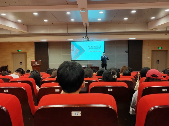 李梁裔副總經(jīng)理以折紙飛機的趣味小游戲?qū)耄瑖@“新時代應(yīng)用型人才的創(chuàng)新創(chuàng)業(yè)思維提升”主題,從“互聯(lián)網(wǎng)+”如何賦能大學生創(chuàng)新創(chuàng)業(yè)、大學生有哪些創(chuàng)業(yè)模式、如何加強大學生創(chuàng)新創(chuàng)業(yè)能力等方面進行了系統(tǒng)闡述。他鼓勵大家要突破傳統(tǒng)思維觀念,善于運用逆向思維解決工作生活中遇到的困難,準確把握機遇,積極面對未知和未來不確定的因素。講座內(nèi)容豐富、深入淺出,現(xiàn)場氣氛熱烈。大家紛紛表示今后要強化創(chuàng)新創(chuàng)業(yè)意識,多學習、多思考、多嘗試,積極投入到創(chuàng)新創(chuàng)業(yè)實踐當中。