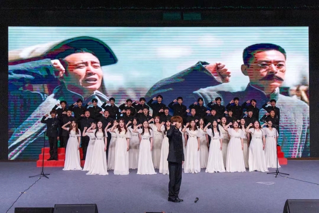 比賽過程中,合唱團精心策劃、用心編排,巧妙地將動作、舞蹈、朗誦、情景演繹等表演方式與歌曲相融合,以飽滿的精神狀態(tài)、創(chuàng)新的藝術(shù)構(gòu)思,傳承弘揚紅色文化,激發(fā)師生的愛國情懷,用最真摯的情感唱出對黨和國家的熱愛。