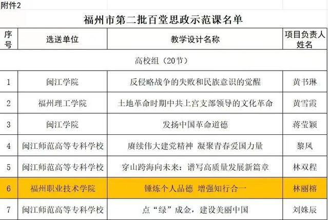 日前,《福州市教育局關(guān)于公布全市思政課教師“大練兵”交流展示活動暨第二批百堂思政示范課(金課)遴選結(jié)果的通知》(榕教思〔2024〕17號)文件公布,學(xué)校報送的五堂思政課入選福州市第二批百堂思政示范課,入選數(shù)量居全市院校首位。