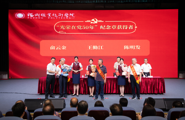 會(huì)上,王建生書(shū)記為老黨員頒發(fā)“光榮在黨50年”紀(jì)念章,陳念東校長(zhǎng)宣讀了表彰文件,與會(huì)領(lǐng)導(dǎo)為“兩優(yōu)一先”獲獎(jiǎng)個(gè)人代表和集體頒發(fā)證書(shū)、獎(jiǎng)牌。