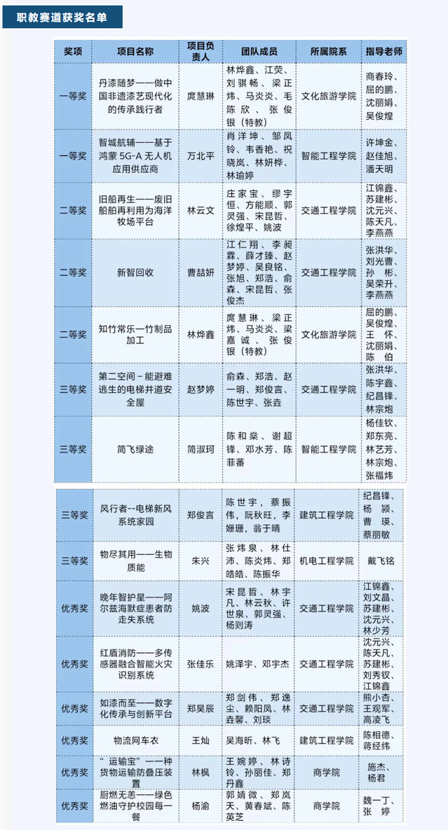 學(xué)校高度重視本次大賽的籌辦,校賽自啟動(dòng)以來,受到了全校師生的廣泛關(guān)注,經(jīng)過二個(gè)月的學(xué)院選拔賽、校賽初賽,共有19個(gè)項(xiàng)目脫穎而出晉級校級現(xiàn)場決賽。決賽現(xiàn)場,各項(xiàng)目師生團(tuán)隊(duì)結(jié)合專業(yè)知識,社會熱點(diǎn)、技術(shù)創(chuàng)新等方面展開項(xiàng)目闡述,現(xiàn)場氣氛熱烈。經(jīng)過現(xiàn)場激烈的角逐,最終評出大賽職教賽道一等獎(jiǎng)2項(xiàng)、二等獎(jiǎng)3項(xiàng)、三等獎(jiǎng)4項(xiàng)、優(yōu)秀獎(jiǎng)6項(xiàng);紅旅賽道一等獎(jiǎng)1項(xiàng)、二等獎(jiǎng)1項(xiàng)、三等獎(jiǎng)1項(xiàng)、優(yōu)秀獎(jiǎng)1項(xiàng)。