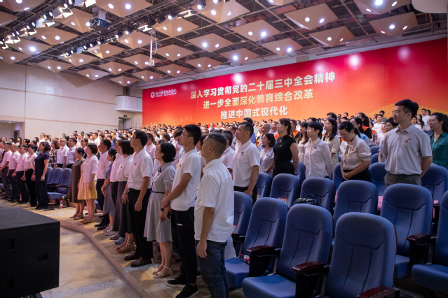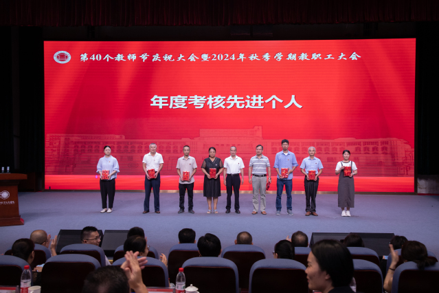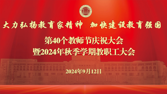9月12日,學(xué)校隆重召開(kāi)第40個(gè)教師節(jié)慶祝大會(huì)暨2024年秋季學(xué)期教職工大會(huì),學(xué)習(xí)貫徹習(xí)近平總書(shū)記在全國(guó)教育大會(huì)上的重要講話(huà)精神,表彰先進(jìn)典型,部署學(xué)期工作,激勵(lì)全體教師大力弘揚(yáng)踐行教育家精神,積極投身教育強(qiáng)國(guó)建設(shè)。校黨委書(shū)記王建生、校長(zhǎng)陳念東出席并講話(huà),副校長(zhǎng)劉春蘭主持會(huì)議,校領(lǐng)導(dǎo)張?zhí)m英、陳偉,全體教師和榮休教職工代表參加會(huì)議。