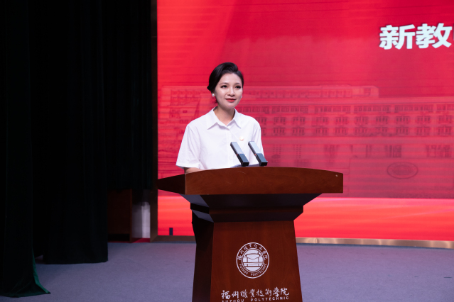 商學(xué)院新入職教師盧麗娜老師發(fā)言,她表示將以教育家精神為引領(lǐng),涵養(yǎng)高尚師德師風(fēng),提升職業(yè)能力素養(yǎng),努力為學(xué)校的建設(shè)發(fā)展貢獻(xiàn)青春力量。