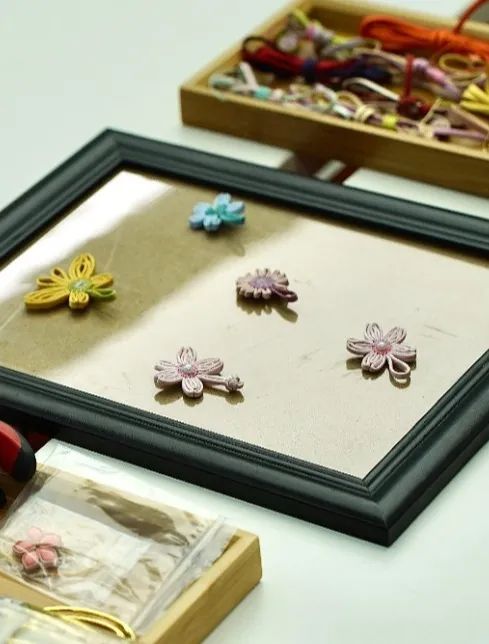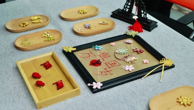 同學們創(chuàng)作的作品豐富多彩,充滿寓意。九瓣向日葵樣式的盤扣胸針寓意“一舉奪魁”;十顆葡萄籽制成的盤扣耳飾洋溢著喜慶熱烈的節(jié)日氛圍;手繪國旗的胸針盤扣,熠熠生輝,彰顯的是同學們的拳拳愛國心;軟扣裝飾的相框更是別有一番風味,一筆一劃寫上的“祖國萬歲”,是對祖國母親最真摯、最懇切的告白!
