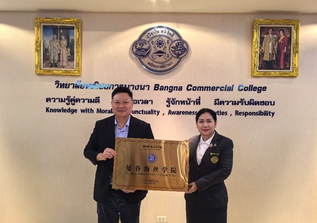 9日下午,陳念東校長(zhǎng)一行前往泰國(guó)曼谷邦納商業(yè)學(xué)院拜訪倫納帕·蓬亞努德校長(zhǎng)并舉行“曼谷海絲學(xué)院”揭牌儀式。陳念東校長(zhǎng)在講話中特別提到目前在我校校內(nèi)就讀的邦納商業(yè)學(xué)院學(xué)生在世界職業(yè)技能大賽上斬獲1銀1銅的佳績(jī),這一消息贏得了在場(chǎng)師生的熱烈掌聲和邦納商業(yè)學(xué)院校方的高度贊譽(yù)。倫納帕·蓬亞努德校長(zhǎng)對(duì)學(xué)校的人才培養(yǎng)成效給予高度認(rèn)可,并表達(dá)了與我校合作的自豪感。揭牌儀式后,雙方就電子商務(wù)專(zhuān)業(yè)標(biāo)準(zhǔn)、課程標(biāo)準(zhǔn)、教材共建深入交流,初步形成“曼谷海絲學(xué)院”建設(shè)工作方案。