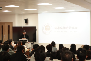 11月28日,揚(yáng)帆社區(qū)成功舉辦主題為“你我面對面,交流且互進(jìn)”的國家獎學(xué)金獲得者經(jīng)驗分享會,社區(qū)副書記嚴(yán)澎、輔導(dǎo)員及學(xué)生代表共100余人參加活動。