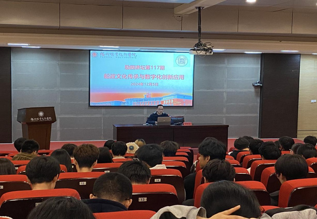 12月5日,由機電工程學院承辦的第117期勵園講壇“船政文化傳承與數(shù)字化創(chuàng)新應用”在學術(shù)報告廳成功舉辦,本次講壇由我校省級個人科技特派員、車工高級技師陳向文老師主講,各二級學院學生代表參加。