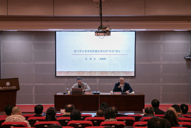 任君慶教授圍繞“基于職業(yè)教育高質(zhì)量發(fā)展的新‘雙高’建設(shè)”這一主題,深入剖析了經(jīng)濟社會高質(zhì)量發(fā)展對職業(yè)教育的新要求,解讀國家系列文件精神,探討了新“雙高”建設(shè)的內(nèi)涵、要求以及實施路徑,為我校“新雙高”建設(shè)提供了寶貴建議和前瞻性指導(dǎo)。