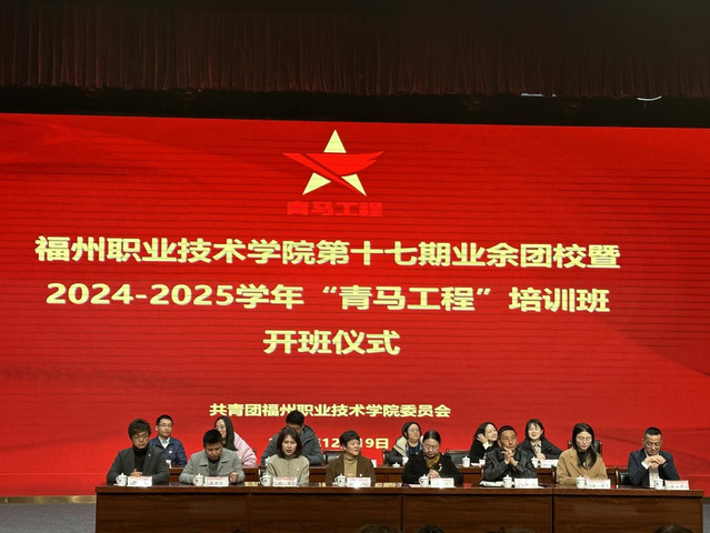 為進(jìn)一步推動新時代青年堅定理想信念,加強(qiáng)馬克思主義理論教育,提升理論素養(yǎng)和實踐能力,12月19日,福州職業(yè)技術(shù)學(xué)院第十七期業(yè)余團(tuán)校暨2024-2025學(xué)年“青馬工程”開班儀式在學(xué)校大禮堂隆重拉開帷幕。校黨委副書記劉春蘭,宣傳統(tǒng)戰(zhàn)部、學(xué)工處、校團(tuán)委負(fù)責(zé)人,馬克思主義學(xué)院教師、各二級學(xué)院團(tuán)組織負(fù)責(zé)人及優(yōu)秀校友代表聶君鋒、鄭威、張業(yè)強(qiáng)出席本次活動。