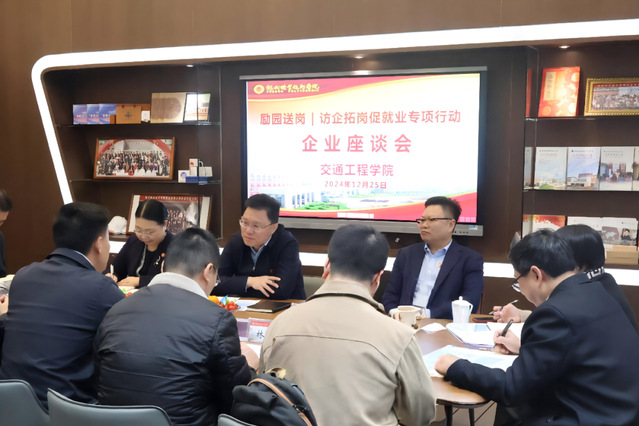 12月25日,由交通工程學院承辦的“勵園送崗——訪企拓崗促就業(yè)專項行動”企業(yè)座談會在學校“大有可為”學習交流中心成功舉辦。校黨委書記王建生,黨委副書記、校長陳念東,黨委副書記劉春蘭出席,閩侯青口汽車工業(yè)園區(qū)管委會副主任吳朋政、黨群工作處處長林迅,青口鎮(zhèn)人民政府人大主席林作祥,省汽車服務(wù)行業(yè)協(xié)會、省機動車檢測服務(wù)行業(yè)協(xié)會有關(guān)領(lǐng)導(dǎo)以及東南汽車、福州地鐵、元翔空港、六和機械等近20名企業(yè)代表參加座談,學校相關(guān)職能部門負責人和交通工程學院黨政負責人等參加活動。