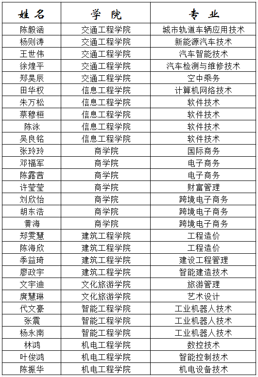 福州職業(yè)技術(shù)學院2023-2024學年國家獎學金獲獎學生名單