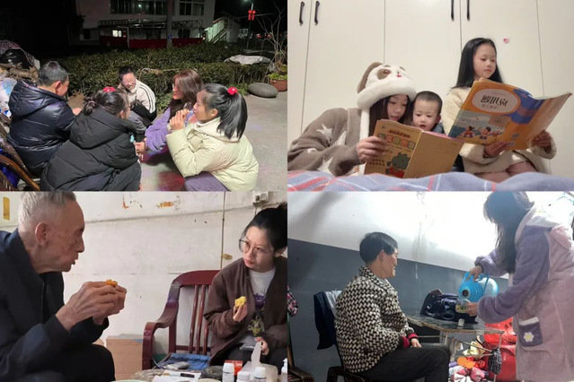 春節(jié)是團圓的時刻,一張全家福是團圓的見證。實踐隊成員為村民拍攝全家福,用鏡頭記錄幸福瞬間,留下珍貴記憶,傳遞溫暖與祝福。對于無法團聚的空巢老人和留守兒童,他們通過陪伴、家務幫扶、學業(yè)輔導等,給予情感慰藉與生活支持,并建立“一對一”幫扶關系,給他們帶來愛與溫暖。