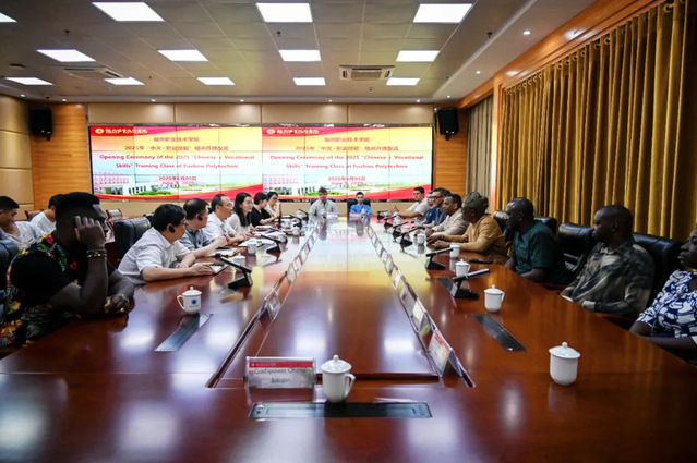 6月9日,我校2025年“中文+職業(yè)技能”培訓(xùn)開班儀式在學(xué)校旗山校區(qū)順利舉行。來自美國塔科馬市貝茨技術(shù)學(xué)院的師生和來自尼日利亞埃多州理工學(xué)院的教師將分別參加我校組織的汽車維修培訓(xùn)和“中文+機電”培訓(xùn)項目。校黨委書記王建生,副校長饒緒黎,國際教育中心、交通工程學(xué)院和機電工程學(xué)院負責(zé)人及相關(guān)人員分別參加開班活動。