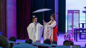 該劇以閩劇始祖曹學佺與400多年后福建省實驗閩劇院一名年輕的閩劇演員跨越時空的邂逅為線索,將唯美動人的中國古典舞、流行音樂、古箏演奏與傳統(tǒng)閩劇折子戲《雙蝶扇·憶雙蝶》《荔枝換絳桃·投荔》及《白蛇傳》選段,巧妙地融合并呈現(xiàn),以創(chuàng)新形式展現(xiàn)閩劇魅力,為師生帶來高雅藝術的沉浸式體驗。