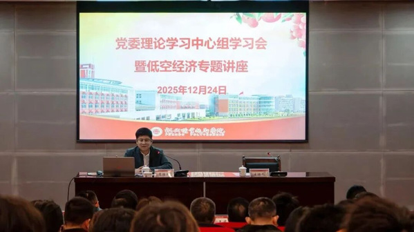 12月24日,校黨委理論學(xué)習(xí)中心組開展低空經(jīng)濟(jì)專題學(xué)習(xí),聚焦“低空經(jīng)濟(jì)”這一新興產(chǎn)業(yè)熱點,深入探討發(fā)展趨勢與人才培養(yǎng)路徑。福州地區(qū)大學(xué)新校區(qū)管委會黨組成員、副主任,閩侯縣低空經(jīng)濟(jì)指揮部副指揮長賈博群博士應(yīng)邀到校作“低空經(jīng)濟(jì)熱潮下的冷思考——從‘野蠻生長’到‘精準(zhǔn)治理’”專題講座。校黨委書記王建生,黨委副書記、校長陳念東,校領(lǐng)導(dǎo)劉春蘭、張?zhí)m英、陳偉、饒緒黎、包良燁,各部門負(fù)責(zé)人、各學(xué)院黨政負(fù)責(zé)人,智能工程學(xué)院、建筑工程學(xué)院、文化旅游學(xué)院、商學(xué)院相關(guān)專業(yè)師生及企業(yè)代表參加講座。講座由校黨委委員、副校長饒緒黎主持。