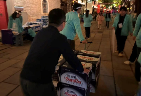 凌晨4時許,當城市還在沉睡,我校志愿者已在校門口整齊列隊、集結完畢。凌晨5點,天光未亮,負責賽道補給的志愿者們已全員抵達指定點位。在裁判員、組長指揮下,他們迅速行動,搬運物資、擺放桌椅、分裝補給品、鋪設防滑墊……本次我校共負責賽道沿線2個補給站,每個站點均配置了飲用水、運動飲料補給。