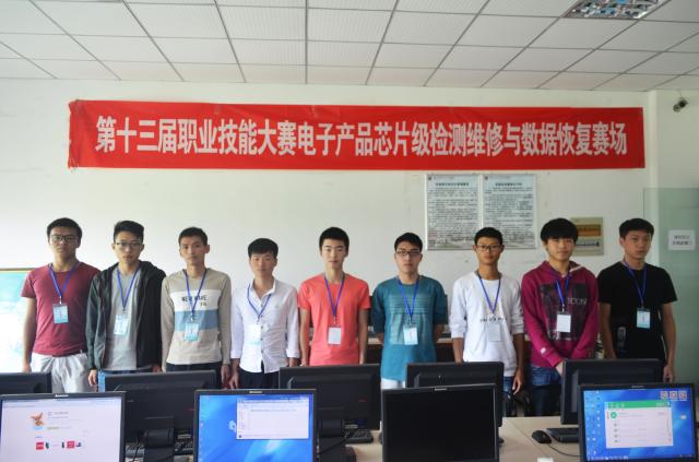 “電子產(chǎn)品芯片級(jí)檢測(cè)維修與數(shù)據(jù)恢復(fù)”賽項(xiàng)決賽選手合影
