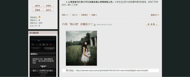 為進(jìn)一步加強(qiáng)和改進(jìn)大學(xué)生心理健康教育,廣泛宣傳普及心理健康知識(shí),展現(xiàn)當(dāng)代大學(xué)生奮發(fā)蓬勃、積極向上的精神風(fēng)貌,不斷提高大學(xué)生心理素質(zhì),營(yíng)造和諧校園、和諧心靈,在學(xué)院“5.25心理健康月”來(lái)臨之際,計(jì)算機(jī)系特舉辦“美麗心靈,快樂(lè)人生”――大學(xué)生心理健康博客大賽。