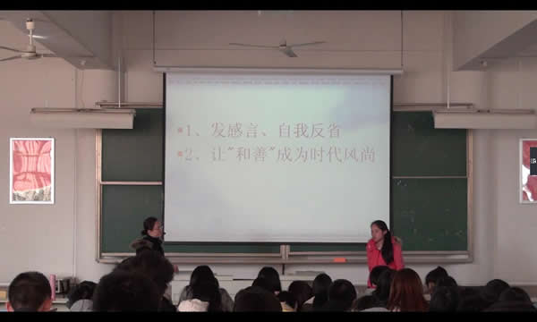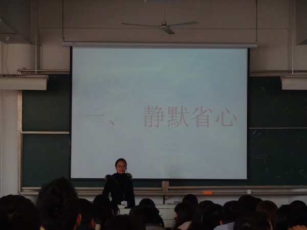 2014年11月26日,計(jì)算機(jī)系在1號(hào)教學(xué)樓301教室舉行道德講堂講座活動(dòng),本次勵(lì)園道德講堂由計(jì)算機(jī)系張如老師主持并主講,系學(xué)生代表參加了此次講座。 此次勵(lì)園道德講堂以‘讓"和善"成為時(shí)代風(fēng)尚’為主題,通過(guò)靜默省心、聽歌曲、誦經(jīng)典、講故事、發(fā)善心、向“德”鞠躬、送吉祥、一堂一善事等八個(gè)環(huán)節(jié)來(lái)引導(dǎo)學(xué)生進(jìn)行自我思想與心靈的洗滌。首先,張如老師讓大家在“靜默省心”環(huán)節(jié)叩問(wèn)自己心靈三個(gè)問(wèn)題;接下來(lái)讓大家聽歌曲《善良的人》,在這首歌曲中,大家了解了何為“善”,何為善良之人;進(jìn)入誦經(jīng)典環(huán)節(jié),《弟子規(guī)》--泛愛眾為大家展示了眾善的意義;講故事環(huán)節(jié)引入了一個(gè)寓言故事《太陽(yáng)和風(fēng)》和一個(gè)真實(shí)感人的故事《河南鄭州---一碗面溫暖一座城》,從這兩個(gè)故事中大家了解了“善”就在我們身邊,不是虛無(wú)的;經(jīng)過(guò)以上環(huán)節(jié)后, “發(fā)善心”環(huán)節(jié)里張如老師請(qǐng)學(xué)生代表一起來(lái)感悟“善”,并讓全體學(xué)生向“德”鞠躬;感悟之余,進(jìn)入“送吉祥”環(huán)節(jié),張如老師送給大家?guī)拙涿怨裁?;最后在“一堂一善事”環(huán)節(jié)中,大家清理好教室衛(wèi)生,為此次的講堂劃上了圓滿的句號(hào)。 本期的勵(lì)園道德講堂營(yíng)造了人人從“善”的良好風(fēng)氣,引導(dǎo)學(xué)生崇尚道德踐行道德,從身邊的小事做起,用善舉創(chuàng)造一個(gè)和諧與美麗的社會(huì)。