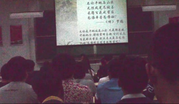 “只要人人都獻(xiàn)出一點(diǎn)愛,世界將變成美好的人間…”7月2日晚上,一曲令人蕩氣回腸的歌曲久久地回蕩在1號(hào)教學(xué)樓301階梯教室里。 當(dāng)天晚上,計(jì)算機(jī)系舉行了以“人生因奉獻(xiàn)而精彩”為主題的道德講堂活動(dòng),由計(jì)算機(jī)系張琴老師主持。這次活動(dòng)分為8個(gè)環(huán)節(jié),通過靜默醒心,唱一首歌,看一部短片,誦一段經(jīng)典,談一番感悟,向德鞠躬,送一份吉祥,做一件好事的流程,給與會(huì)人員上了一堂生動(dòng)的道德課。一段《蜂》的誦讀,讓在場的學(xué)生感愛到了一股強(qiáng)大的正能量在心中流淌;一段“基層教師曹瑾”的先進(jìn)事跡視頻短片,令在場的學(xué)生無不動(dòng)容;無私奉獻(xiàn)名言警句誦讀,引發(fā)了在場教職工們的深思;兩名學(xué)生代表發(fā)自內(nèi)心分享的感悟,使大家在不知不覺中受到道德的洗禮、感化。 本次道德講堂活動(dòng)以春風(fēng)化雨的形式,提升了學(xué)生的道德修養(yǎng),增強(qiáng)了他們的責(zé)任心和使命感?;顒?dòng)過后,談起活動(dòng)感受,一名學(xué)生說:“這是一次精神的洗禮、心靈的撞擊,這次活動(dòng)讓我真切地感受到道德的力量是如此強(qiáng)大”。