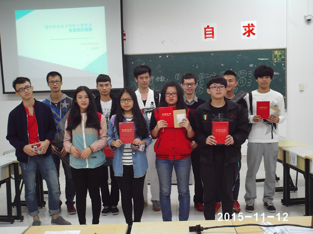 為了進(jìn)一步加強(qiáng)學(xué)生安全教育和管理工作,增強(qiáng)廣大學(xué)生的安全防范意識(shí),營造文明安全的校園生活環(huán)境,2015年11月12日,計(jì)算機(jī)系在一號(hào)教學(xué)樓309開展了一場精彩生動(dòng)的安全知識(shí)競賽。 本次競賽的題目內(nèi)容包含出行交通、防盜、防火等方面,突出強(qiáng)調(diào)了新媒體時(shí)代下的校園網(wǎng)絡(luò)安全教育。在主持人宣讀完比賽規(guī)則后,各組參賽選手沉著應(yīng)對(duì),機(jī)智應(yīng)答。經(jīng)過激烈的角逐,2015計(jì)應(yīng)2班的范文豐同學(xué)摘得比賽桂冠,2015計(jì)應(yīng)2班的葉桂萍同學(xué)、潘聲華同學(xué)榮獲二等獎(jiǎng),2015軟件1班黃鑫同學(xué)、黃欣媛同學(xué)和2015計(jì)應(yīng)3班余裕泰同學(xué)榮獲三等獎(jiǎng)。 本次安全知識(shí)競賽的舉辦,提高了計(jì)算機(jī)系廣大同學(xué)的安全和文明行為意識(shí),增強(qiáng)了同學(xué)們遵守文明規(guī)范的自覺性。以賽促學(xué),通過營造一個(gè)安全文明校園氛圍,對(duì)促進(jìn)學(xué)生養(yǎng)成良好的行為習(xí)慣也具有重要意義。
